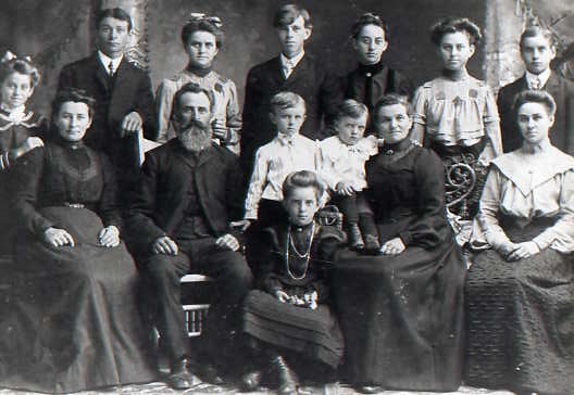 Elsa, Adolph, Hattie, Henry, Alma, Frieda, Herbert (back) Martha, Martin, Walter, Henoch, Ida, Bertha (front) Esther (very front) |