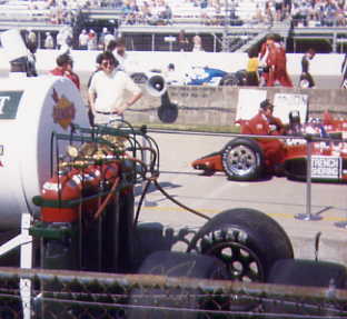 | Teo Fabi comes into the pits. |