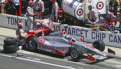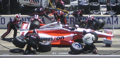 | Juan Pablo Montoya takes a pitstop (running in the Indy 500 for the first time since his 2000 victory). |