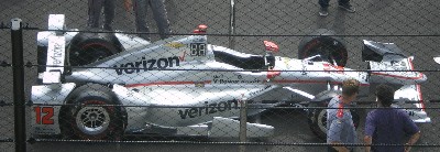| The cars are stopped in a line during a red flag after the nasty Scott Dixon crash, with Alonso leading. |