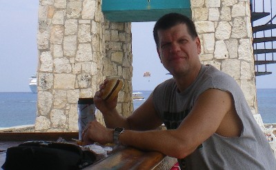 While the rest of the family went parasailing, Amy took a picture of me eating lunch.