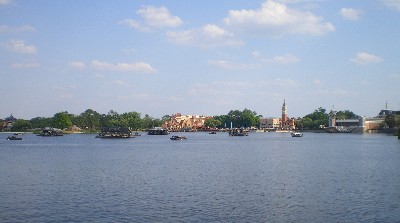 Arriving at Magic Kingdom (Space Mountain on the right).