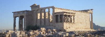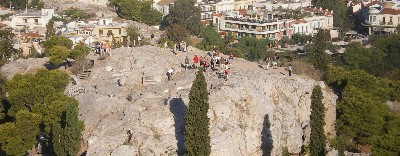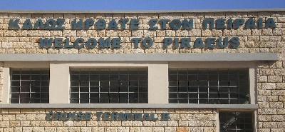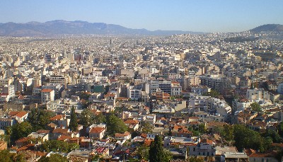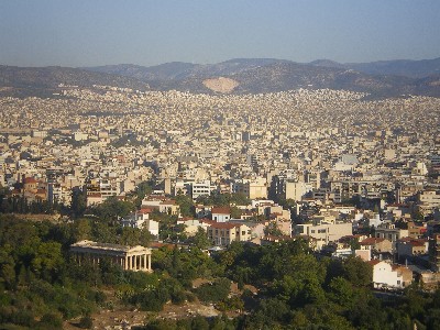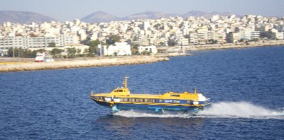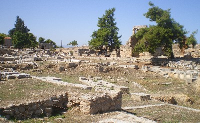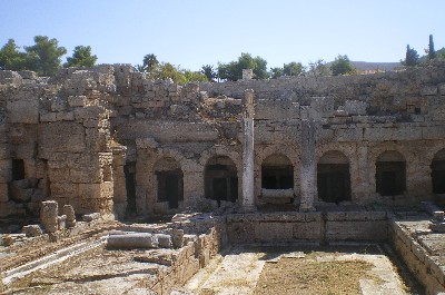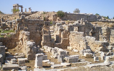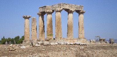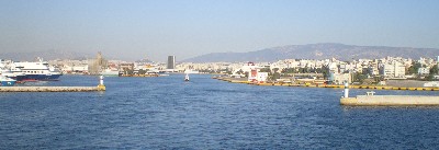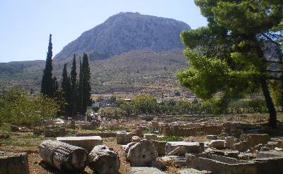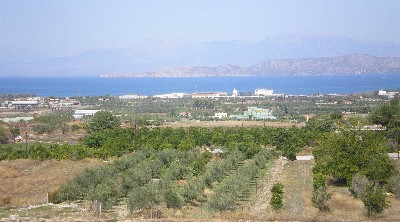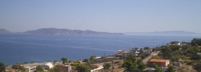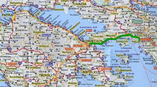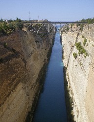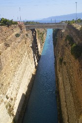 | Corinth is strategically located on the isthmus (see map above) between the Gulf of Corinth (photograph above) and the Saronic Gulf (photograph below). A narrow canal (photographs further below) has connected the two gulfs since the late 19th century. |