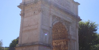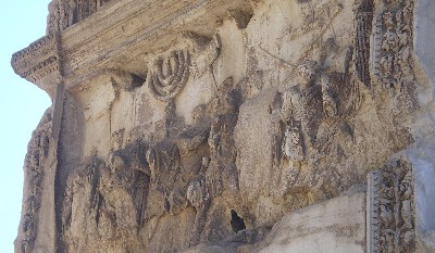 | Carving in Titus Arch depicting the Triumph (victory parade) after the conquest of Jerusalem (note the minora). |