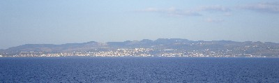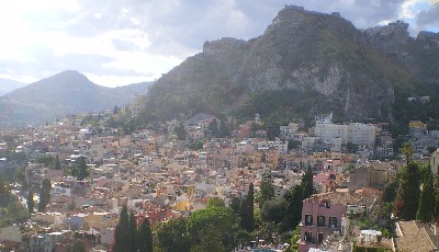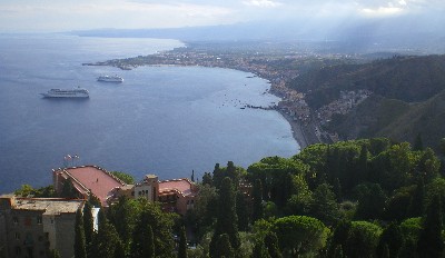 | This view from Taormina shows how rugged is Sicily's east coast. No wonder Montgomery had a tough time advancing here. |