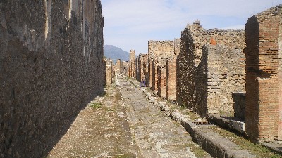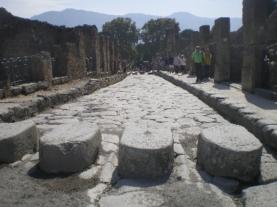 | These blocks were placed in the street to enforce the standard height and wheelbase for chariots. The background of this web page is a closeup photograph of this street. |