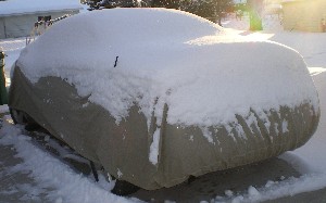 In between the snowbanks on the driveway, I looked longingly at my convertible (right).