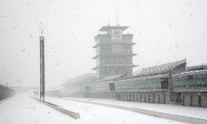 Even Indy was buried in the white stuff (left), although in my opinion, the speedway looks better with cars on it.