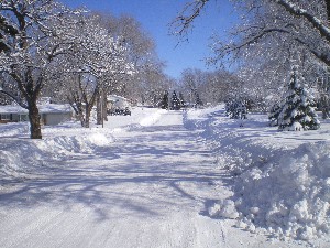 The snow kept coming! Look at it piled on both sides of my driveway (above).